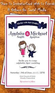 App provides facility to create personalized invitation card and share it with your friends family members and friends via Gmail Whatsapp Facebook Intagram Twitter and other social media websites or sharing apps.
