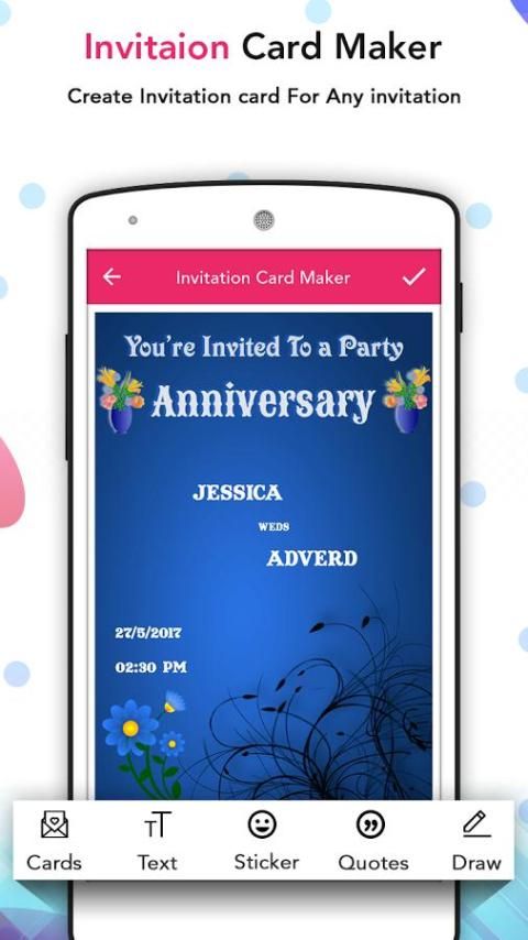 Undangan Card Maker akan membantu Anda sampai Anda memiliki produk akhir di depan Anda. Tampilkan kreativitas Anda untuk