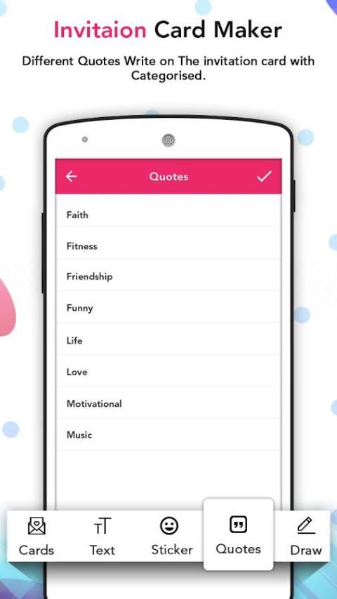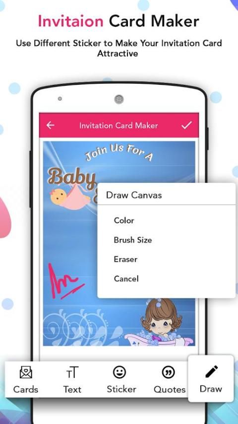 Menulis pada gambar yang Anda pilih dari aplikasi Undangan Pesta Kartu dan menjadi kreatif! Desain E-card terbaik di sini