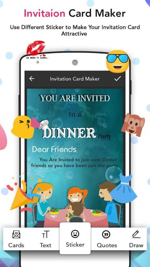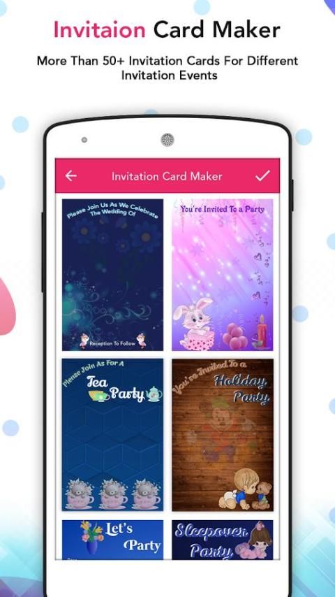 di pembuat kartu ucapan gratis kami! Aplikasi ini memiliki beberapa gambar dari berbagai jenis Undangan Pesta.