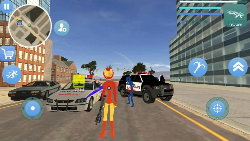Stickman rope Hero Vegas Crime Simulator Iron Man true hero comes to help the citizen.