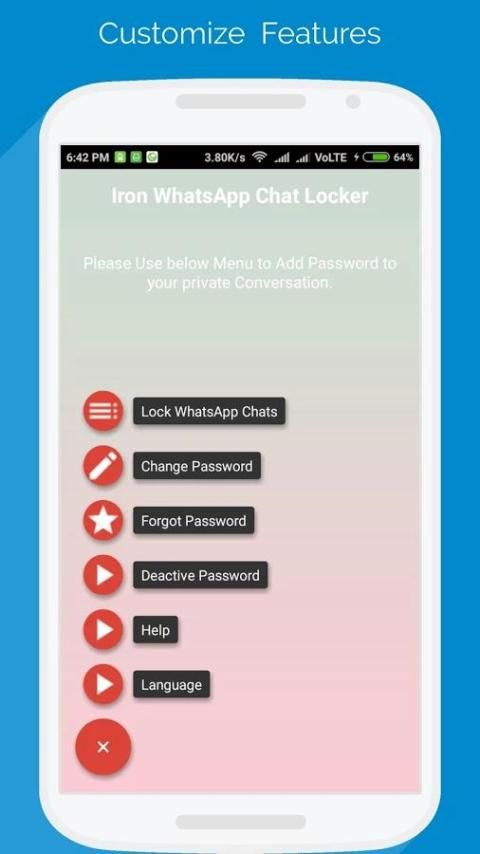 Iron WhatsApp obrolan Locker adalah sebuah aplikasi yang menyediakan privasi pribadi pada mereka percakapan chatting. ini akan Lindungi percakapan Anda
