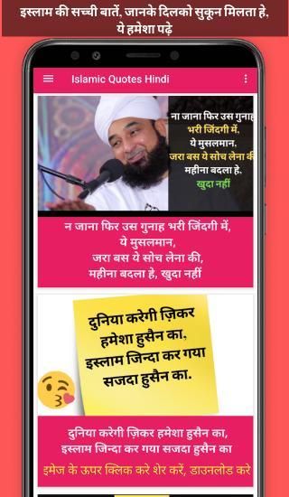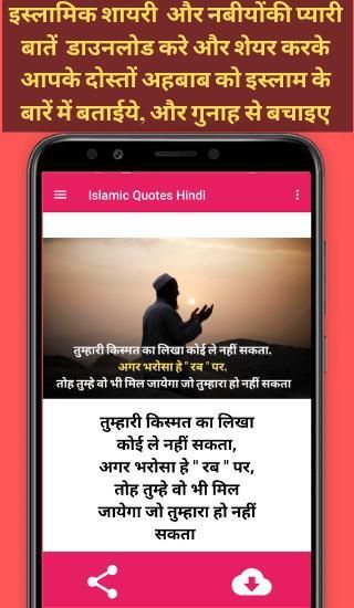 Download “Islamic Quotes Hindi” application ,internet connection is required to use this application, save this “Islamic Quotes Hindi” images on mobile screen ,and can set as wallpaper on desktop which enlightened your faith.