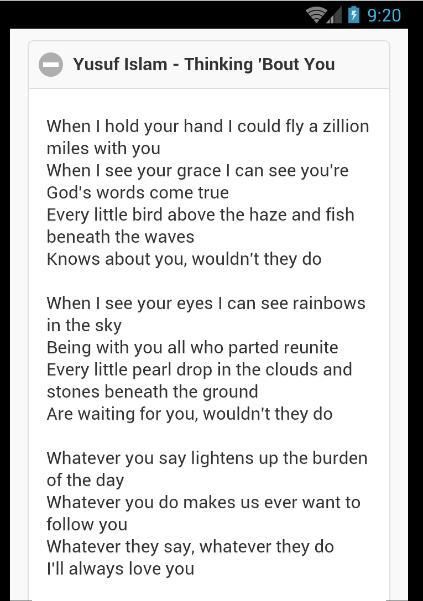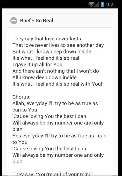 I have tried my best to accumulate a list of most popular Islamic Songs Lyrics. All the songs are copyrighted to the respective singer. This app is all about educational app and people get it free for spreading the awesome Islamic Song in all over the world. In this app you will get most popular Islamic Singers songs. like: