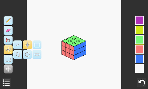- Basic shapes, different pen/eraser sizes, flood filling, color dropper/picker, undo/redo