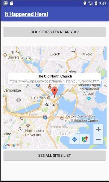 Apakah itu untuk orang berlibur, wisatawan bisnis pada istirahat makan siang atau seseorang di singgah penerbangan mencari untuk membunuh waktu, “It Happened Here" dapat membantu orang menemukan situs bersejarah di dekat lokasi mereka saat ini