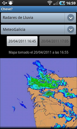 Situs Well, dapatkah Anda lakukan berkat Chove? Aplikasi yang menunjukkan gambar radar meteorologi dari berbagai bidang Spanyol. Situs Berkat gambar-gambar ini Anda dapat melihat persis di mana awan hujan berada. Dengan fungsi "animasi" Anda dapat memvisualisasikan evolusi dan perpindahan awan ini dan dengan demikian menentukan apakah akan turun hujan dalam beberapa menit ke depan. Bahwa jika, sekarang jika Anda salah, Anda tidak dapat menyalahkan orang.