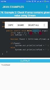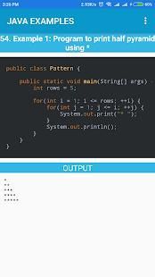 To rock java programming you must develop your skill with example or programs. Java Examples App app helps you to refer a great collection java programs on the go and Helps you improve Logical thinking of various problems related to Programming. Java Examples Application give source code and output for various Java Programs or examples.