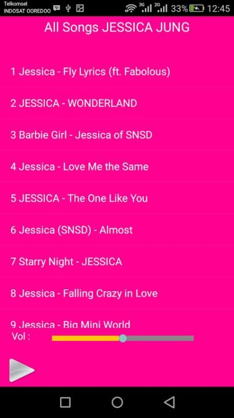 Aplikasi ini dibuat khusus untuk para penggemar JESSICA JUNG SNSD lagu. lagu baru dan lama, terbaru, hits, populer, dan lagu-lagu yang bagus untuk mendengar. Mp3 Streaming lagu, Mp3 streaming, tidak ada fitur download di karena dapat melanggar HAK CIPTA.