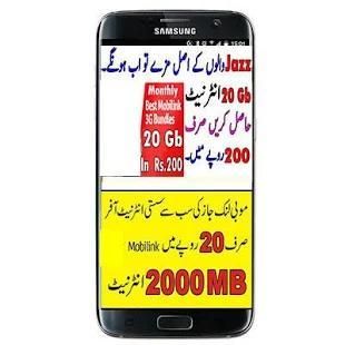 Mobilink Pakistan aplikasi menyediakan semua Paket informasi ini berisi Internet 3G, 4G dan penawaran lainnya seperti Sim tawaran lagao. Pengguna dapat dengan mudah menemukan informasi tentang semua jenis penawaran Jazz. Hal ini juga Menyediakan internet.Someone dapat berlangganan semua paket dengan hanya mengklik paket keinginan. Mobilink (Jazz) Paket 2018 gratis dan Diperbarui.