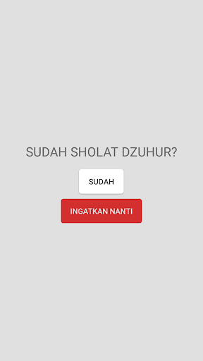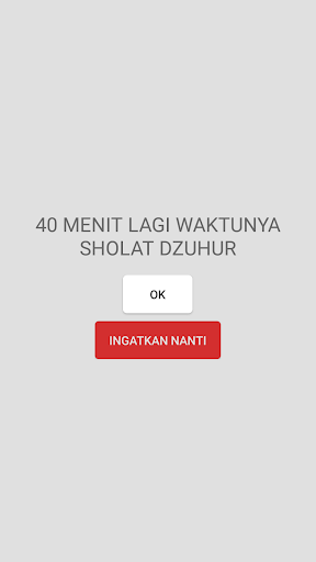 Ketika waktu sholat telah tiba, Aplikasi Jadwal dan Pengingat Sholat akan menampilkan alarm pengingat sholat. Waktu Alarm sholat dapat diganti menjadi beberapa menit sebelum adzan dikumandangkan (maksimal 99 menit). Alarm sholat dapat dinyalakan/dimatikan/ditunda sesuai kebutuhan.