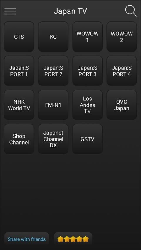 Aplikasi ini berisi hampir saluran TV di Jepang