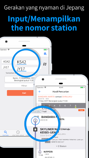 Aplikasi ini akan menunjukkan rute atau cara transfer dengan kereta api atau pesawat terbang di Jepang.