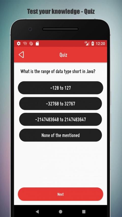 This app has a Quiz option in which you can test your knowledge and skill for Java Programming.