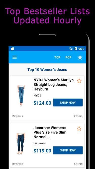 Hanya memilih kategori seperti celana pendek denim, celana kasual atau celana jeans fashion, dan aplikasi kami akan memberikan daftar 10 besar penjual terbaik dan 100 jins yang paling populer atau capris dalam kategori tersebut. Anda juga dapat mencari pakaian denim termasuk dari merek-merek populer seperti NYDJ atau Karen Kane. Setiap jam daftar akan memperbarui untuk menunjukkan buku terlaris terbaru, sehingga Anda tidak pernah kehilangan panas, tren baru dan risiko jatuh ke FOMO.