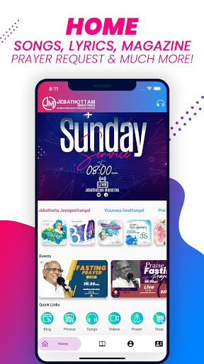 Anda dapat menemukan pembaruan terbaru tentang acara-acara Kementerian Jebathottam. Ini adalah cara yang bagus untuk terhubung dengan jebathottam dan jebathotta jeyageethangal di mana saja, dan kapan saja ...
