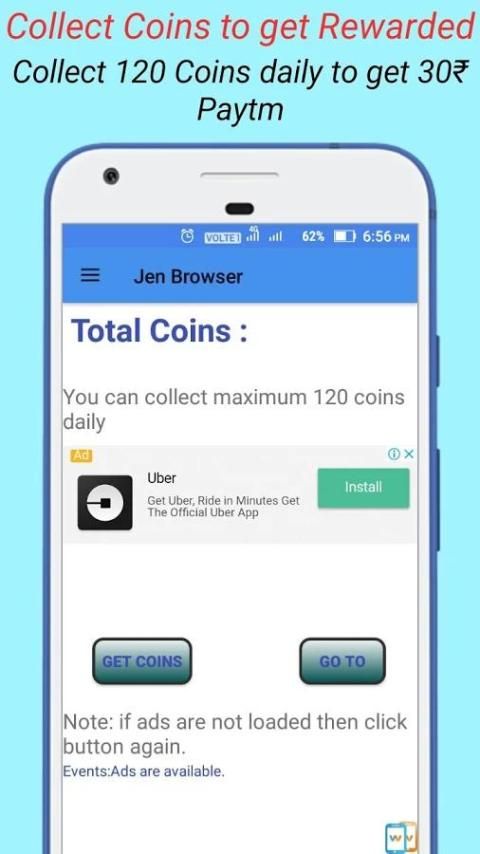 Jen Browser hanyalah sebuah web browser dengan mana pengguna dapat memperoleh Paytm gratis hanya untuk menggunakannya. Untuk mendapatkan pengguna reward harus mengumpulkan 120 + koin setiap hari dengan menonton beberapa iklan dan ketika pengguna akan memiliki 4000 koin maka pengguna dapat menebus / nya hadiah uang nya.