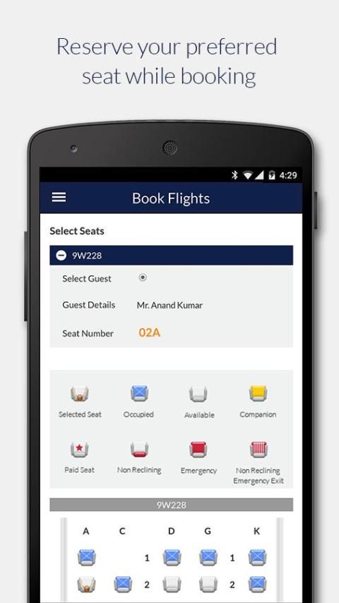 4. Kursi Pilih - Pilih kursi yang Anda pilih sementara pemesanan tiket atau menggunakan fitur Pemesanan Mengelola kami untuk sama
