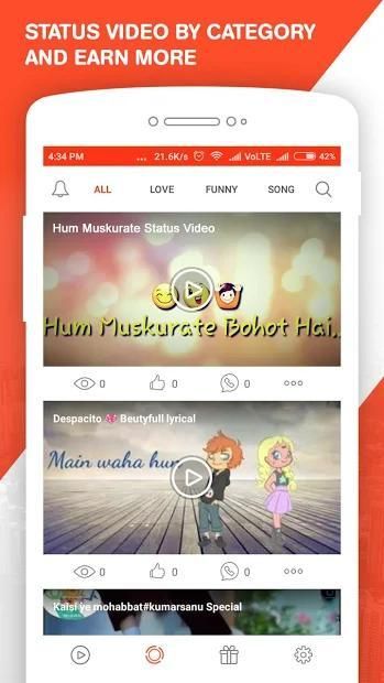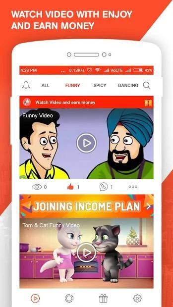 1. Watch funny or status video to earn money