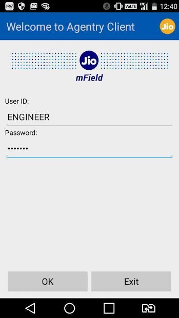 Jio mField adalah aplikasi yang digunakan untuk memproses pesanan pekerjaan yang berhubungan dengan O & M aset. Aplikasi ini allowas pemeliharaan berdasarkan bukti, lokasi kesalahan pada peta, cadangan & kembali materi, akses ke sejarah peralatan, notifikasi update dan perintah penutupan.