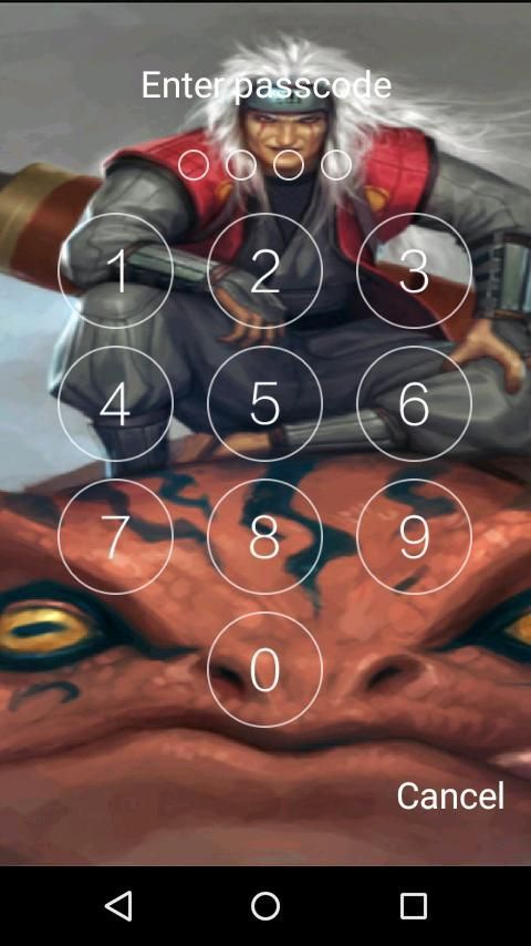 Aplikasi ini adalah layar kunci dengan banyak gambar dari Jiraiya dan naruto uchiwa, aplikasi ini dibuat untuk para penggemar anime, dan untuk semua poeple yang mencintai Ninja naruto, Anda bahkan dapat menambahkan gambar lainnya, dan menempatkan mereka di bawah keyboard, ini leyboard akan membuat tulisan lebih menyenangkan.
