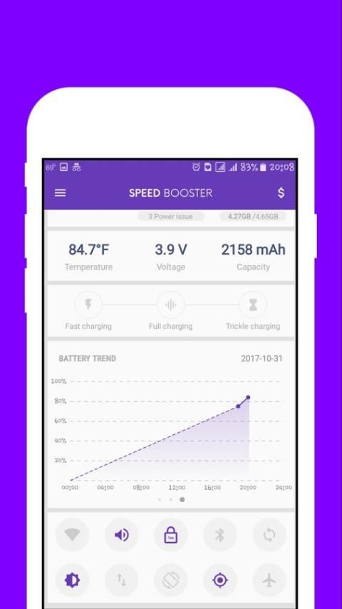 Baterai Fast Charge mengatur cara di mana perangkat Anda dibebankan dengan sistem Pengisian 3 Tahap Unik untuk memastikan Anda mendapatkan hasil maksimal dari baterai Anda dan mengingatkan Anda untuk tidak lebih dari biaya. Ia juga memiliki fitur yang dapat memantau dan mengatur konsumsi daya.
