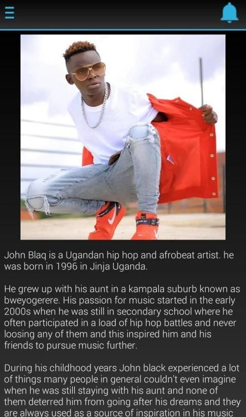 John Blaq Fans Live chat is the social networking app for John Blaq fans. John Blaq is a Ugandan male artiste in his early twenties. He's one of the talented artistes Uganda currently has.