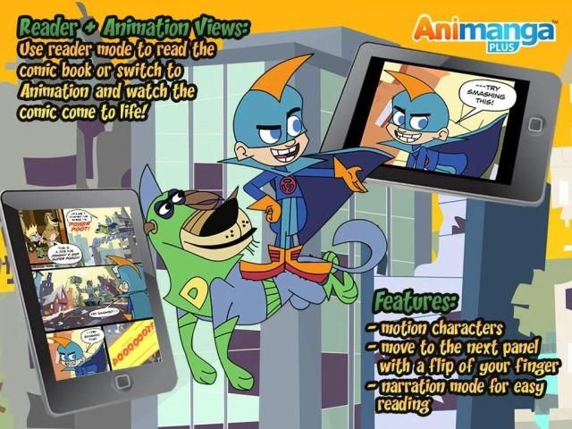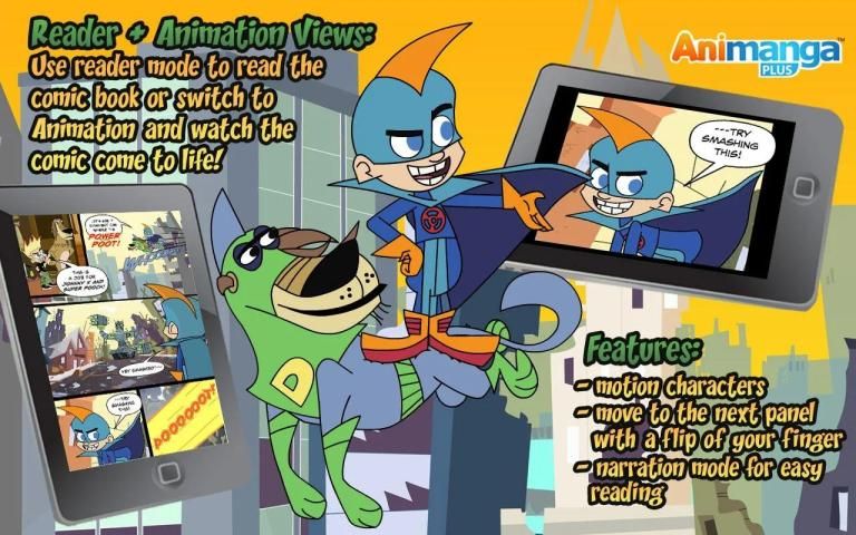 From static print to dynamic moving pictures, Animanga PLUS brings you an engaging animated and interactive versions of your favorite Johnny Test stories as a comic book app for your mobile device. In Reader View, read the story as it was intended for print just flip page by page, while in Animated View, see the stories come to life as they are animated panel per panel.