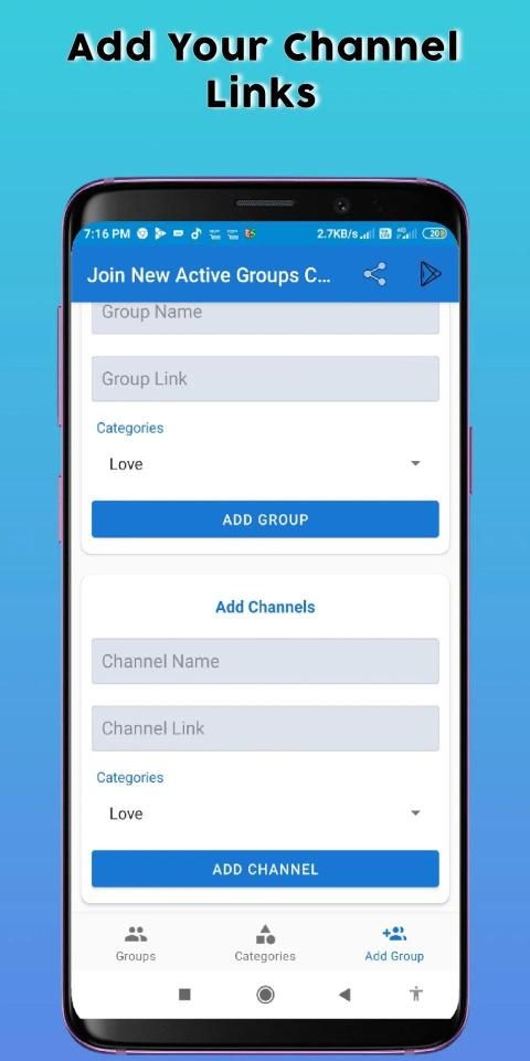 * Add Your Channel and Group Links in This App