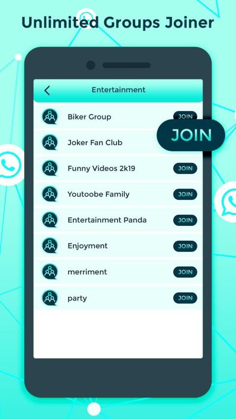 perangkat pintar dan ketuk tombol mulai, dapatkan daftar semua grup yang aktif dan dengan satu ketukan bergabung. Perluas bisnis Anda dan banyak lagi melalui grup sederhana dengan Aktifkan grup Anda dan tambahkan Grup di tautan sosial.
