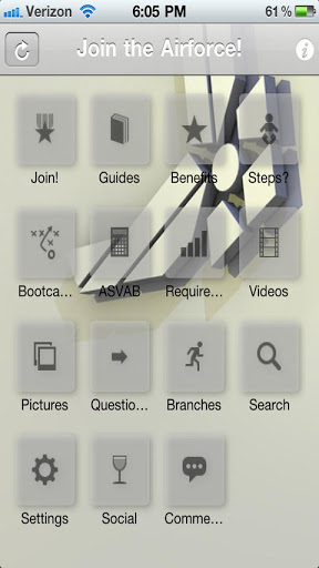 Join the proud fighting men and women of the United States of America Join the Airforce has everything you need to start your new life as a airmen. Features all kinds of guides for bootcamp, joining, asvab studies, and more A short list Video section Built in photo gallery Guides for asvab, bootcamp and joining. Benefits, steps, and requirements. Comments, branches, search and settings. You39;ve already taken the first step Thanks for downloading, please leave a comment and positive rating if you like Join the Airforce or found it useful :
