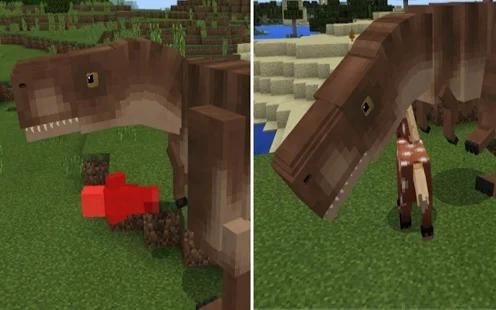 Jurassic Craft is an incredible addon which includes 19 different dinosaurs in one pack. Each of them include a unique set of behaviors. For example, some of them you can tame and ride and others you have to be extra careful with since their aggressive behavior will make them want to kill and eat you. Also, make sure to try out the Jurassic Craft World map!