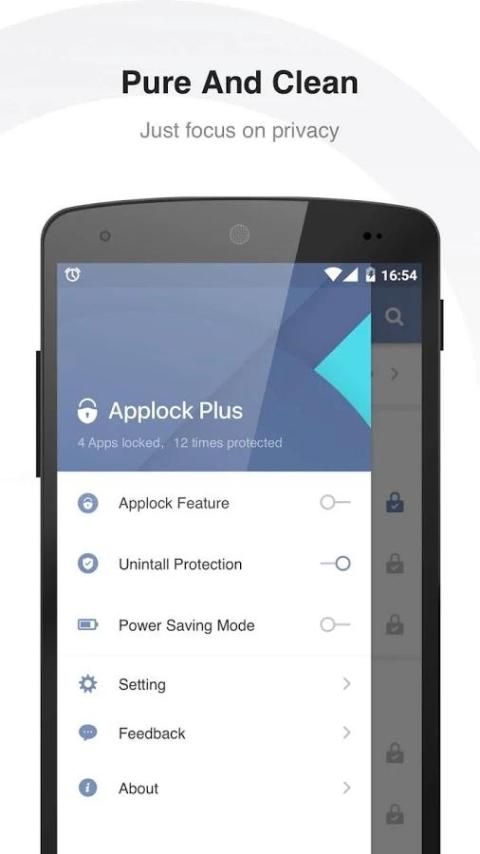 • Kunci aplikasi dengan kunci sandi, kunci pola. meningkatkan keamanan.