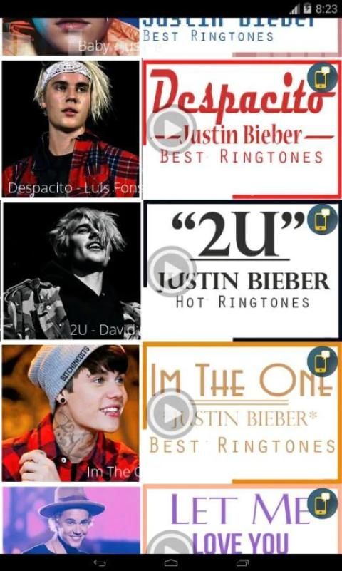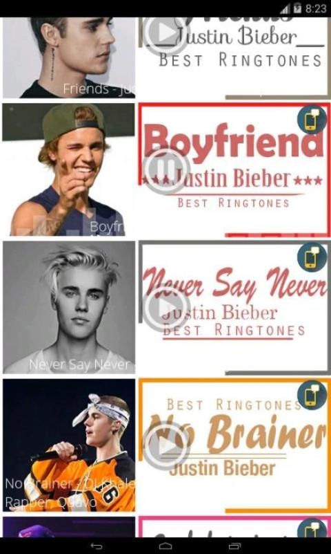 Justin Bieber - Best Ringtones tổng hợp những bài nhạc chuông của Justin Bieber hot nhất trong thời gian gần đây nhất. được chúng tôi cập nhật liên tục - Justin Bieber - Best Ringtones hứa hẹn mang đến sự khác biệt, phong cách riêng tức thì cho chiếc điện thoại của bạn.