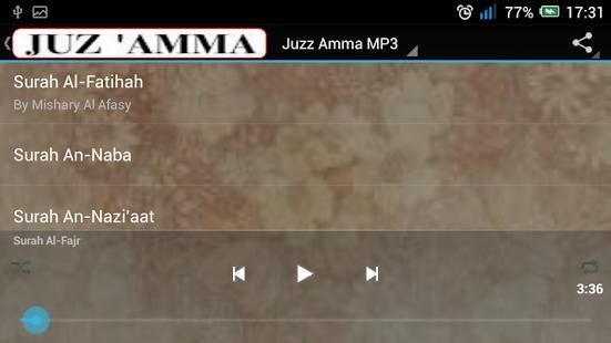 Juz Amma MP3 adalah bahwa ada ayat-ayat dalam Al-Quran yang dihasilkan bagi kita untuk membaca dan menghafal meskipun sibuk dengan pekerjaan sehari-hari. Mudah-mudahan Anda dapat menggunakannya.