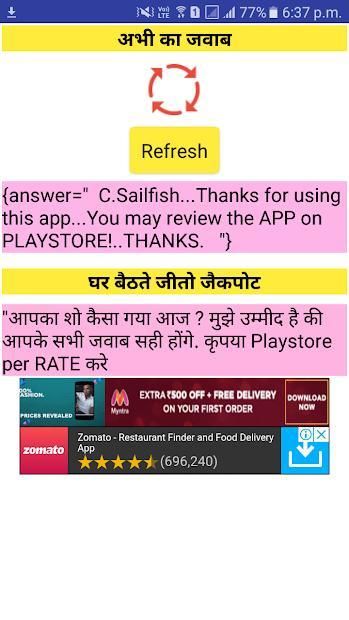 because now i will help you to suggesting answer of k.b.c play.along live with the help of this app
