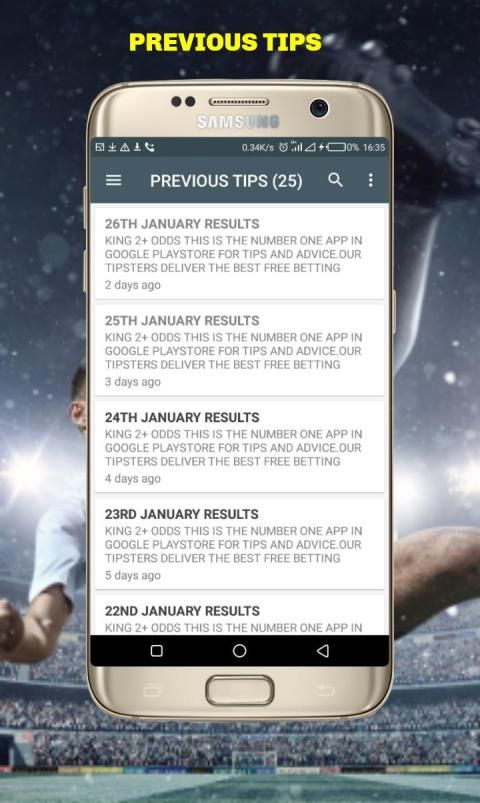 KING 2+ ODDS IS A TRANSPARENT,PROFITABLE RESOURCE THAT EVERY GAMBLER SHOULD HAVE.THE GAME COMBINATION IS OUTSTANDING AND WE MAKE AN EFFORT TO CREATE FOR YOU A SAFE,ALWAYS WINNING BETTING SLIP ON A DAILY BASIS.THIS APPLICATION WILL MAKE THE BOOKIES WONDER WHAT KIND OF TRANSFORMATION YOU WENT THROUGH BECAUSE THEY WILL KEEP DEBITING YOUR ACCOUNT AS A RESULT OF THE SUCCESSFUL MULTI-BETS THAT YOU PLACE.