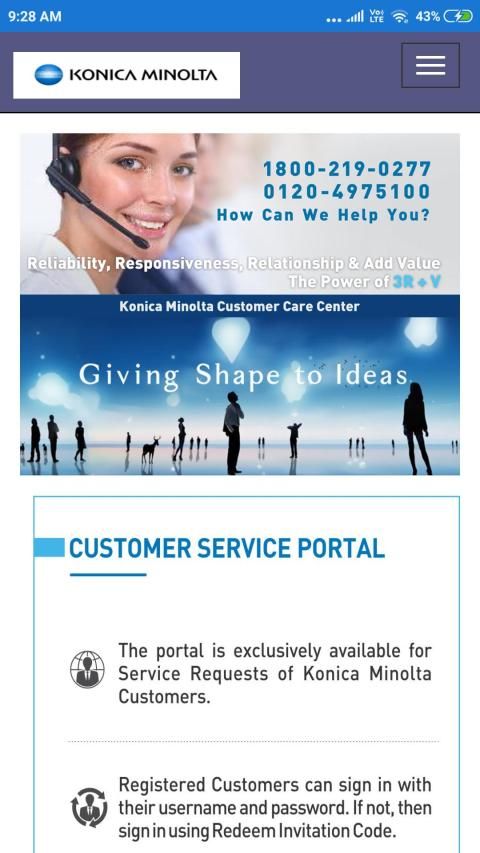 Konica Minolta Customer Service Portal – App to register Online Service request by Customer