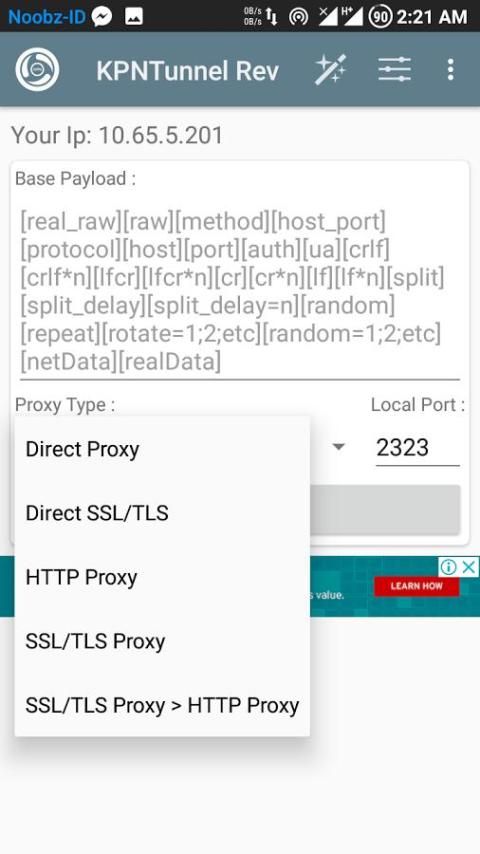 + Direct Proxy. (Tunneling melalui SSH Tunnel Langsung ke SSH Server).