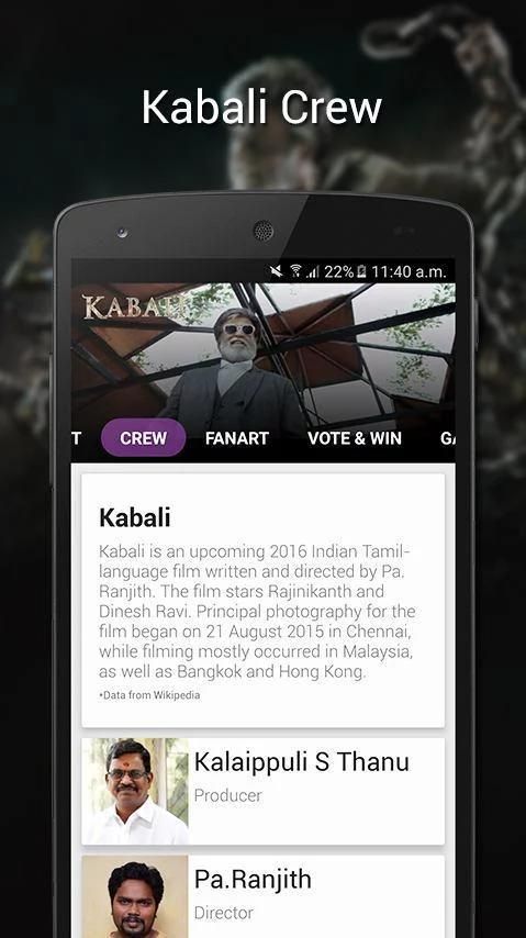 Tidak hanya isi Kabali tersedia tetapi juga Kabali aplikasi melakukan berbagai kontes setiap minggu untuk penggemarnya. Berpartisipasi dan memenangkan eksklusif Kabali Merchandise.