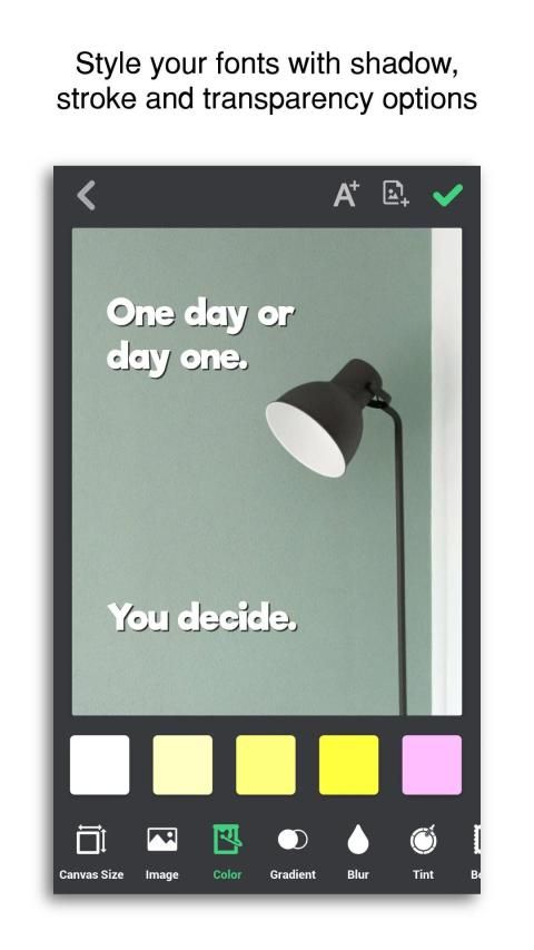 Create short stories, quotes, posters, memes, typography and artworks with this fun and easy to use app.