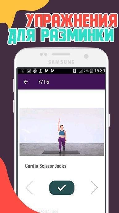 В приложении Вы найдёте эффективные тренировки для сжигание жира в домашних условиях, и без специального оборудования.