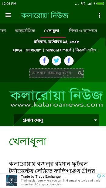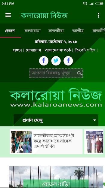 Kalaroa News is one of the largest online newspaper in Satkhira.Get the Kalaroa News in your hand what ever you do where ever you go. The Android Phone or Tablets of your will give you the flavor of confidence and power of knowledge.The free version of Kalaroa News is menu driven.