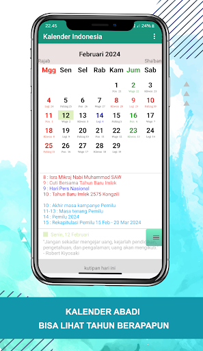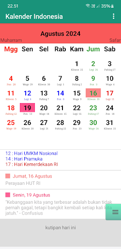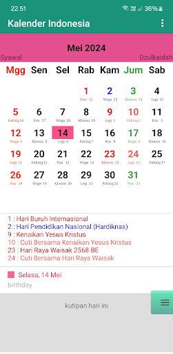 * Kalender dengan tampilan sederhana ( Simple View ) , mirip kalender indonesia yang ada di dinding pada umumnya