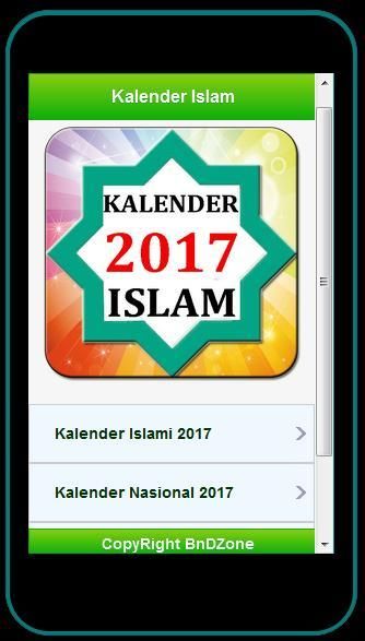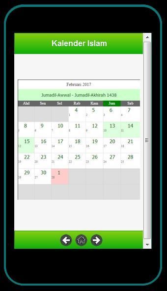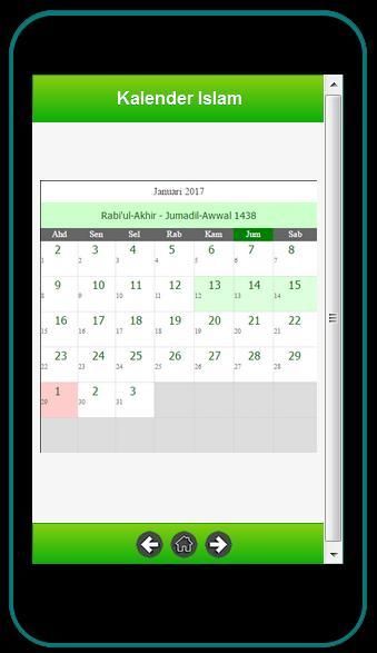 Aplikasi Kalender Islam Hijriyah 2017 lengkap disertai dengan 12 Nama-Nama Bulan dalam Kalender Islam yang digunakan umat Muslim termasuk pada penentuan bulan atau tanggal untuk ibadah serta daftar hari besar islam