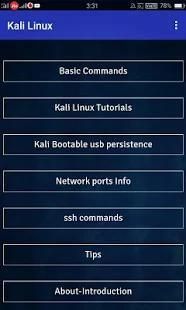 commands and tutorials for kali linux Beginner users.In this application some basic commands are available and some important port number information, Some kali linux tools tutorials for security learn and be safe. you guys can learn kali linux tutorials with this application easily and know how tools are work and what kind of tools available for your security purpose.