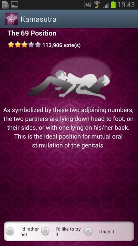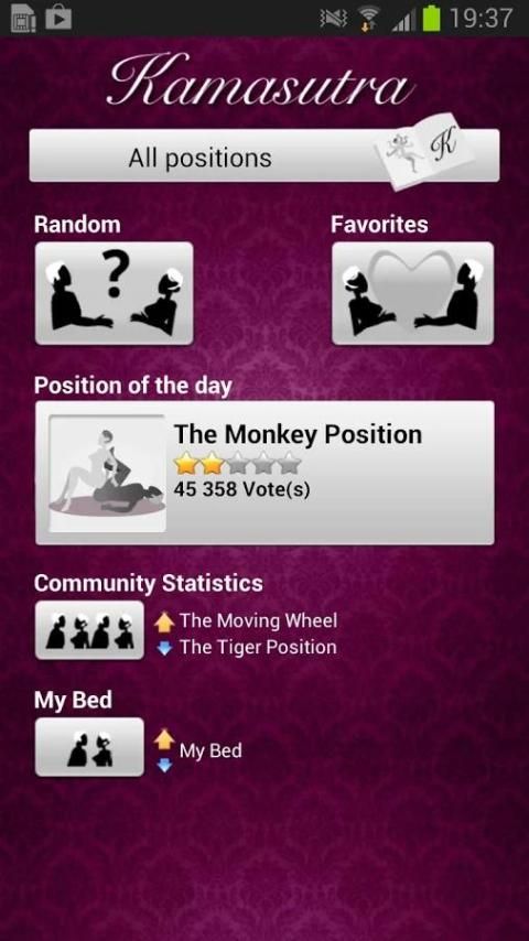 Fully community, you can rate the Kamasutra positions, discover a new position every day, manage your favorites, track your performance, ...