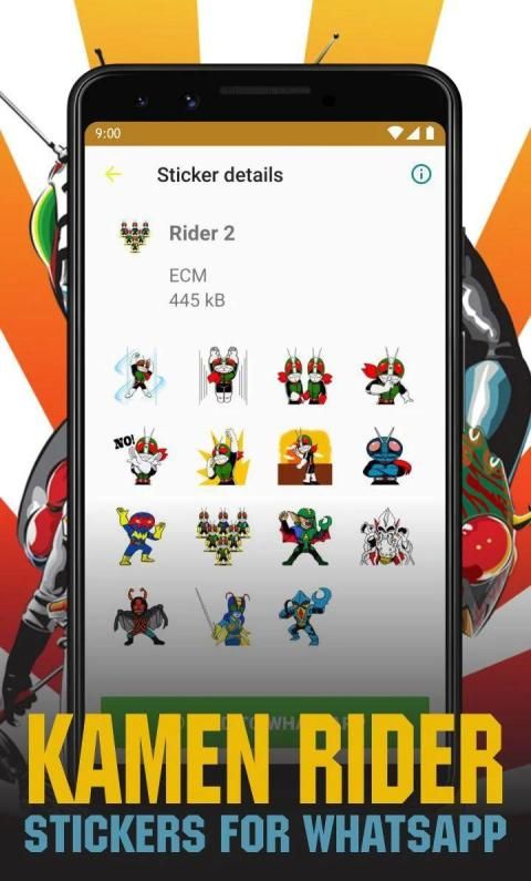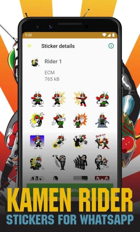 Find most popular android apps here! 20,000+ users downloaded Kamen Rider Stickers for Whatsapp latest version on 9Apps for free every week! When you click, the app will start downloading and wait till it completes installation you can start play. This hot app was released on 2019-03-14. If you want it so go head and download it and enjoy your app.