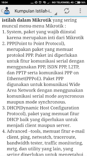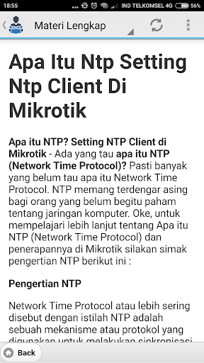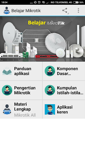 Untuk materi lengkapnya saya tidak cantumkan semua. Anda tinggal download Aplikasinya sebagai penunjang pembelajaran mikrotik juga bagi Guru dan Siswa TKJ.