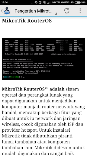 Mikrotik adalah suatu sistem operasi dan perangkat lunak yang dapat digunakan untuk menjadikan komputer menjadi router network yang handal, mencakup berbagai fitur yang dibuat untuk IP network dan jaringan.